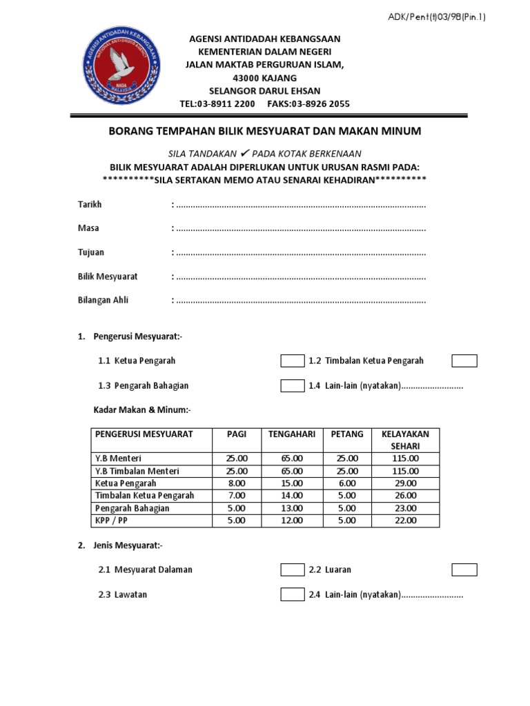 Borang Tempahan Bilik Mesyuarat Dan Makan Minum Pdf